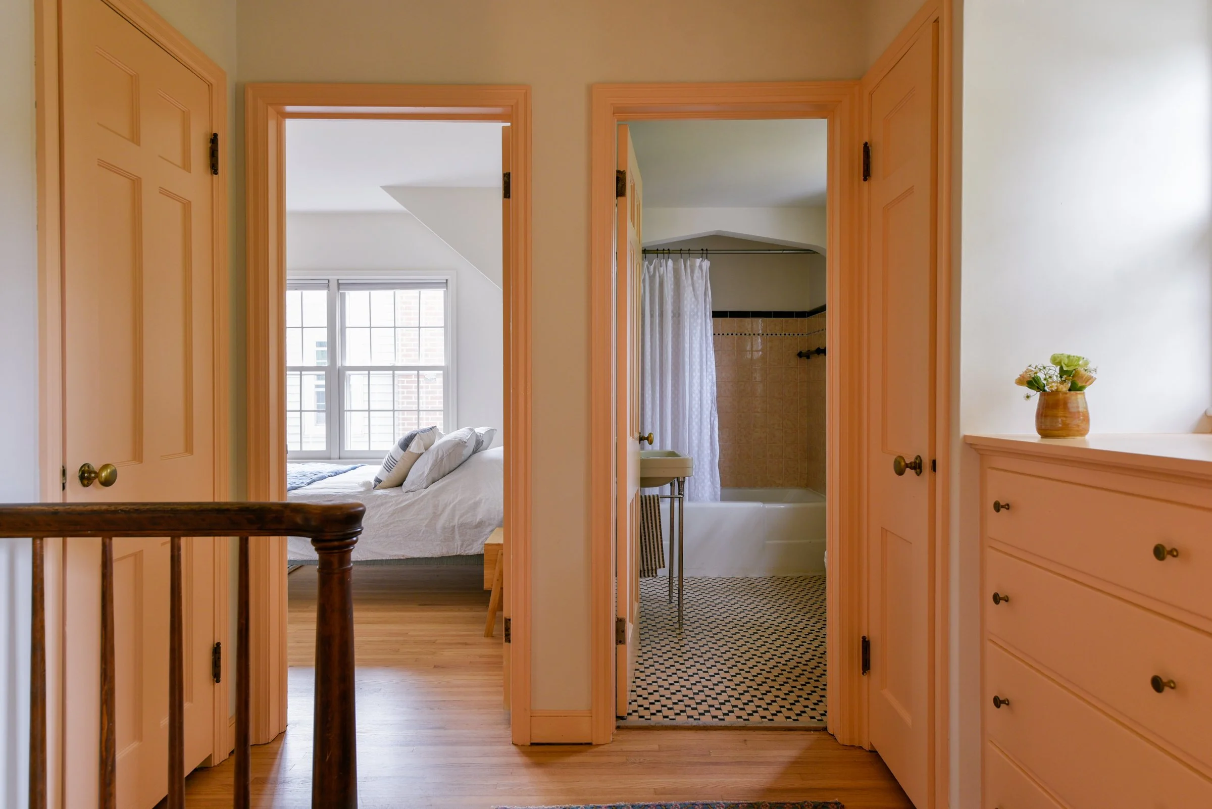 1941 Cape Cod overlooking Lake Nokomis with archways galore and a vintage pink bathroom.