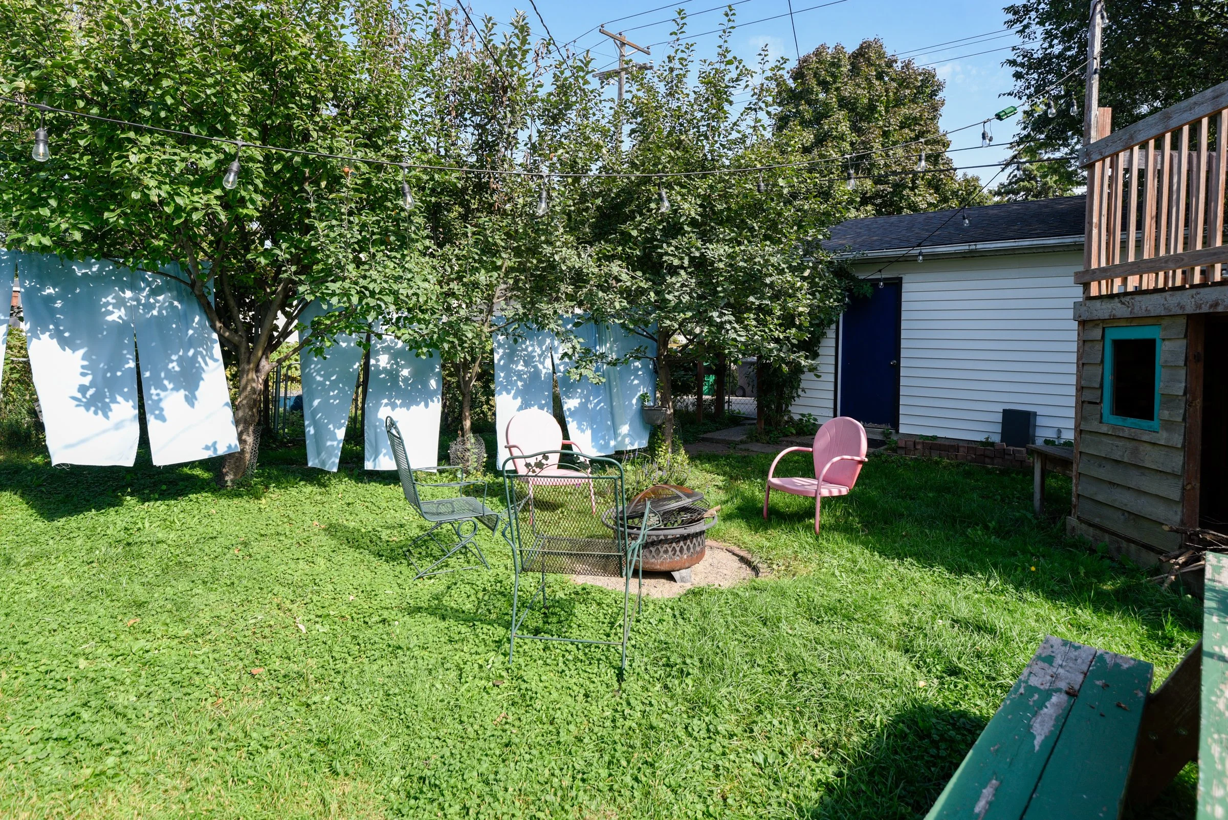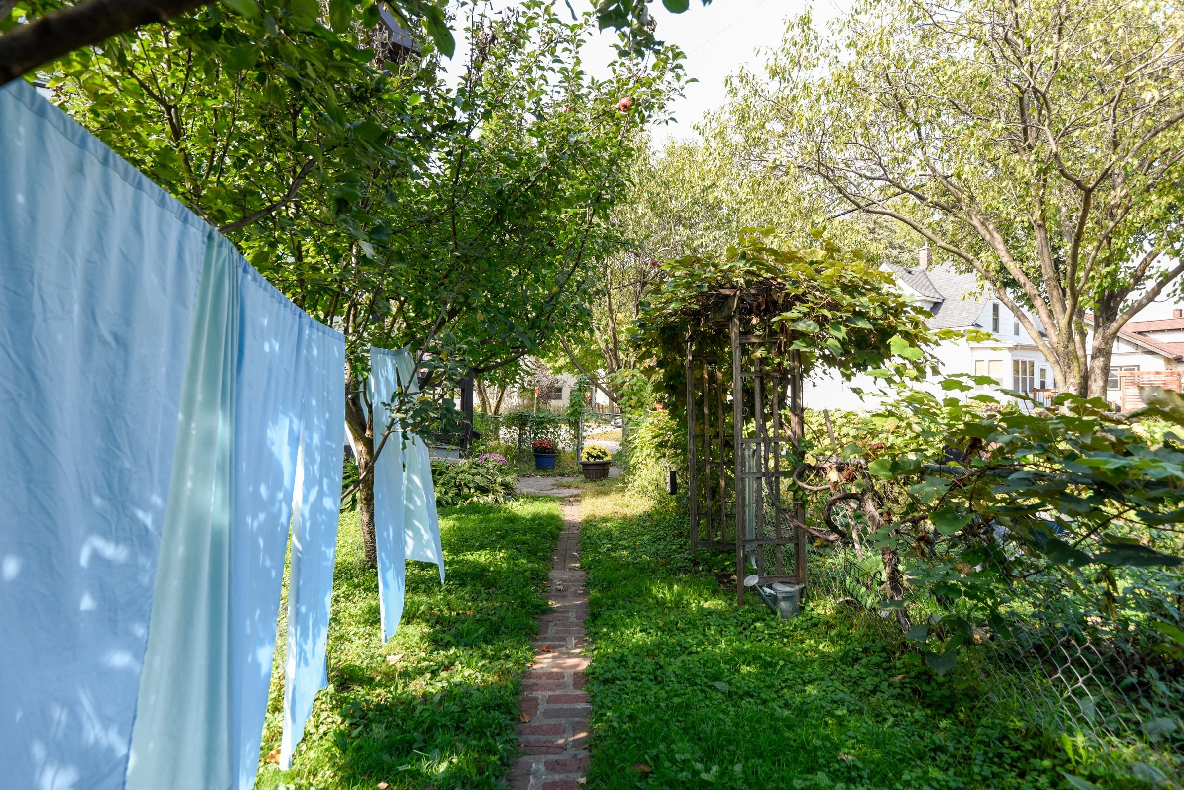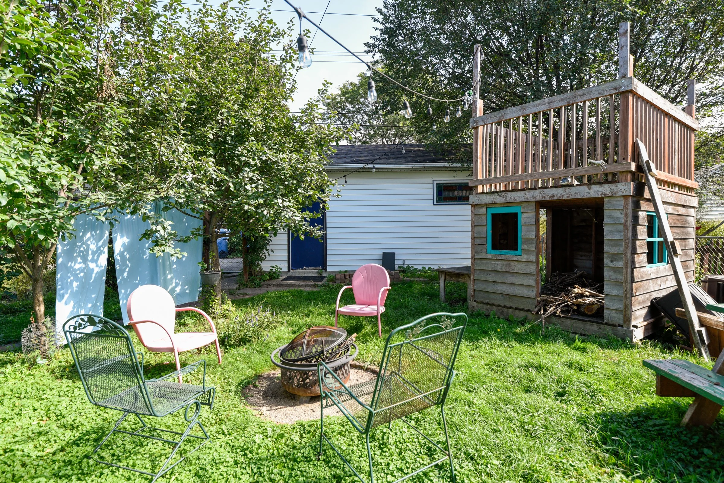 The yard is an unfolding, expansive perennial garden with various zones - relax near the fire pit, play in the treehouse, grow vegetables in the beds fenced off for extra protection from grazing bunnies. Mature grape vines and apple trees line the brick walkway in the backyard. A newer 2 car garage with a sizable driveway offers ample storage + parking. Highly walkable with a score of 96/100 while also ranking 9.4/10 on the quiet scale!