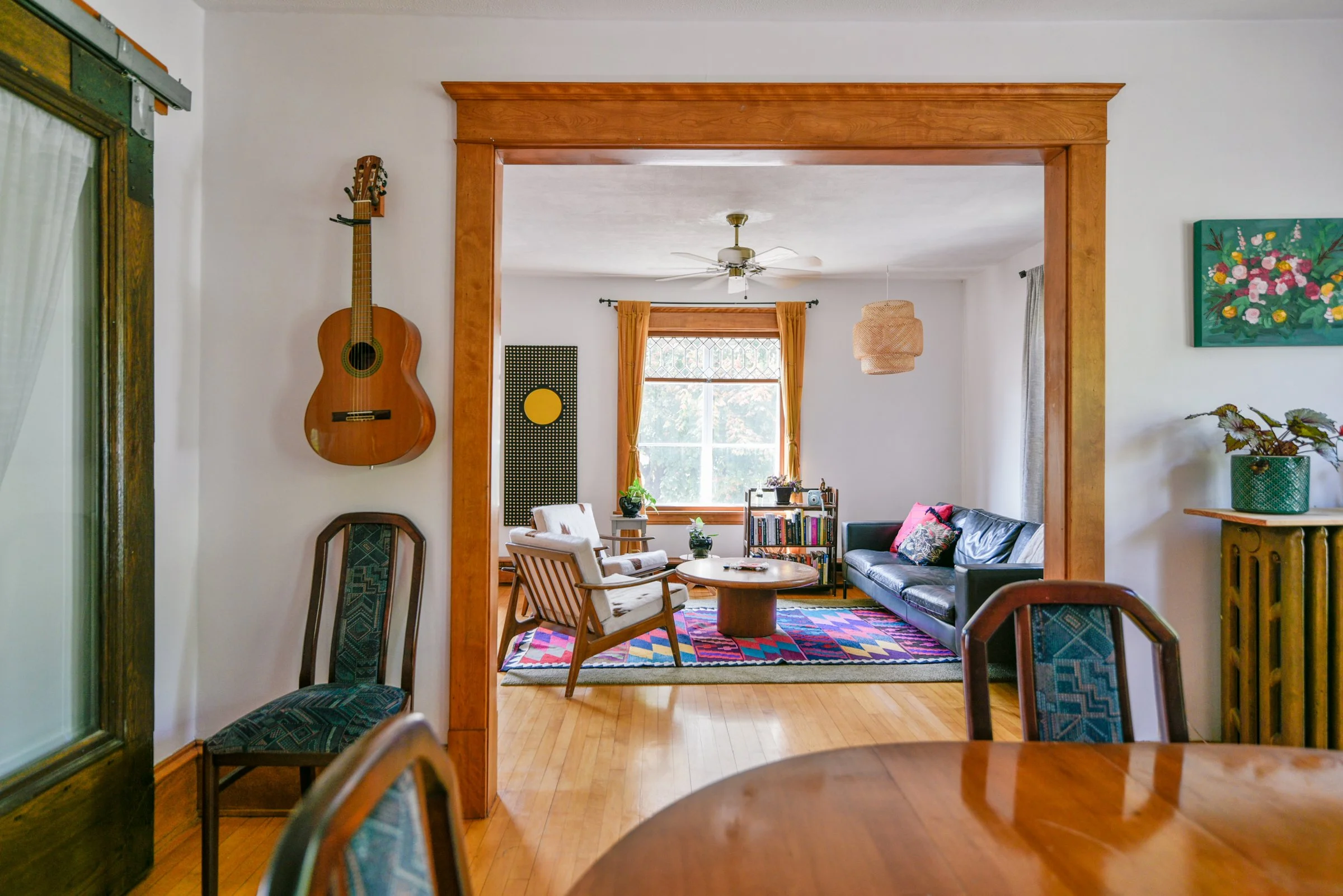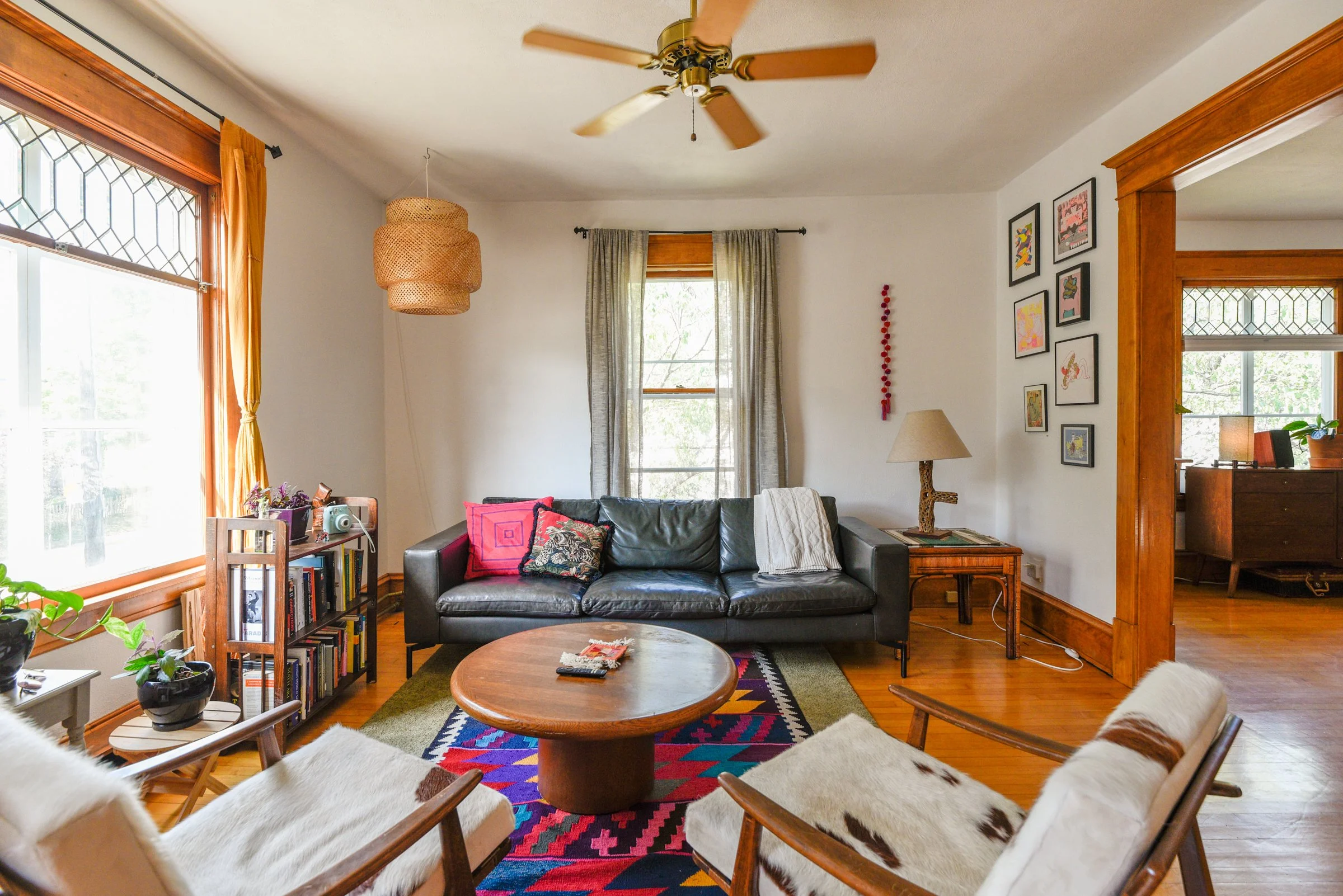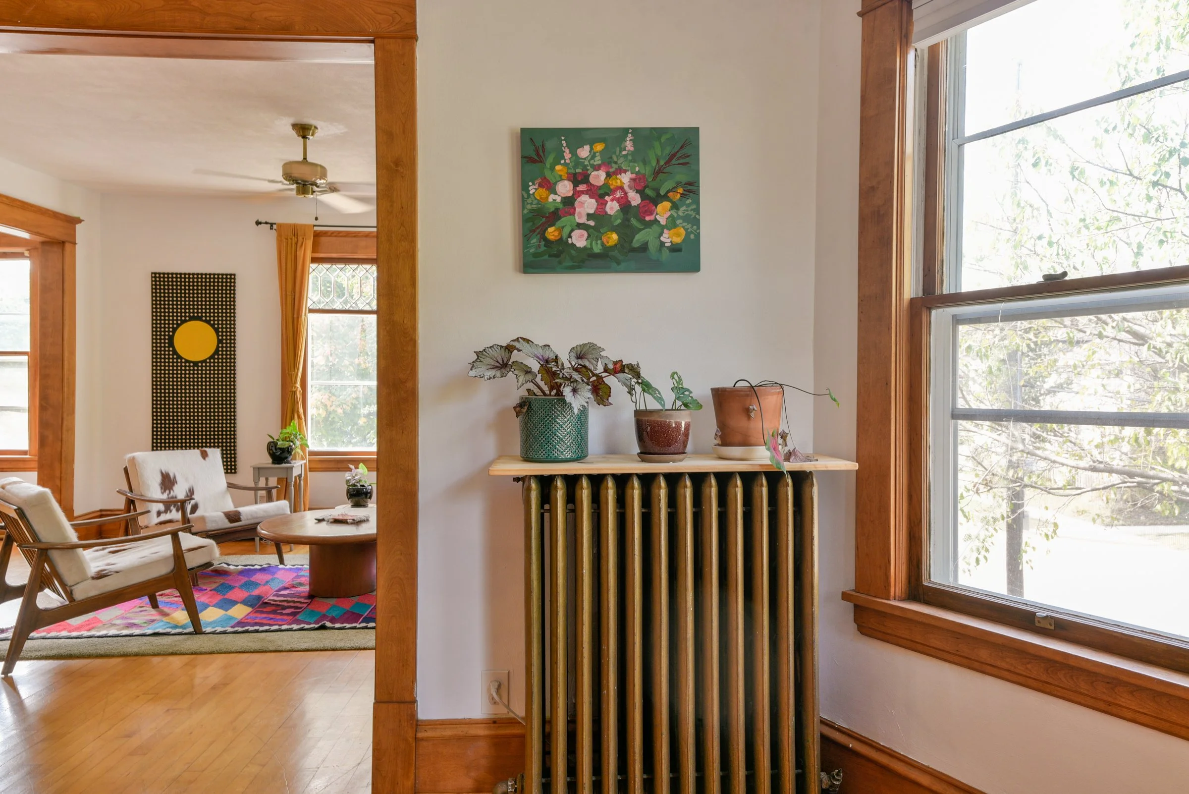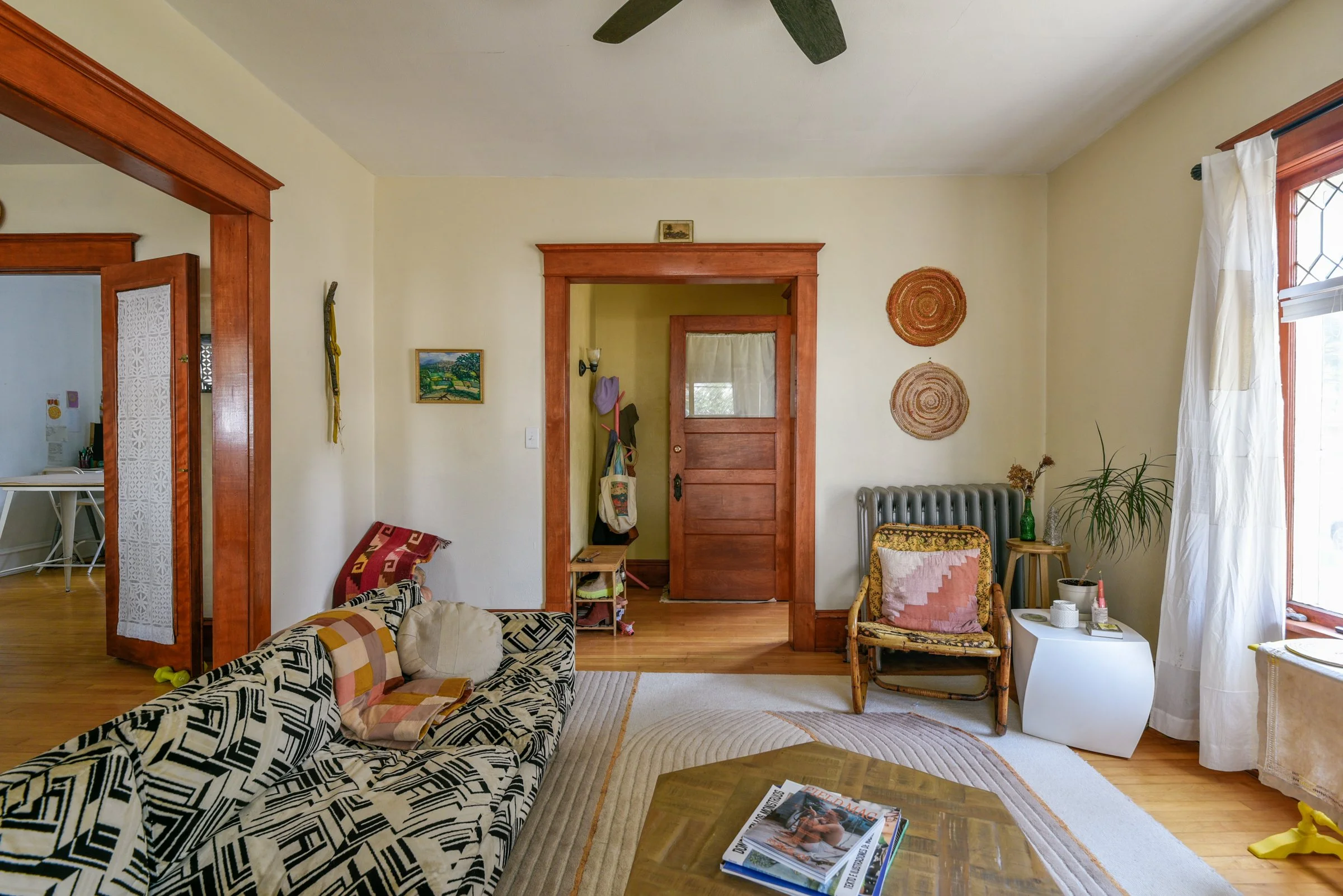 The yard is an unfolding, expansive perennial garden with various zones - relax near the fire pit, play in the treehouse, grow vegetables in the beds fenced off for extra protection from grazing bunnies. Mature grape vines and apple trees line the brick walkway in the backyard. A newer 2 car garage with a sizable driveway offers ample storage + parking. Highly walkable with a score of 96/100 while also ranking 9.4/10 on the quiet scale!