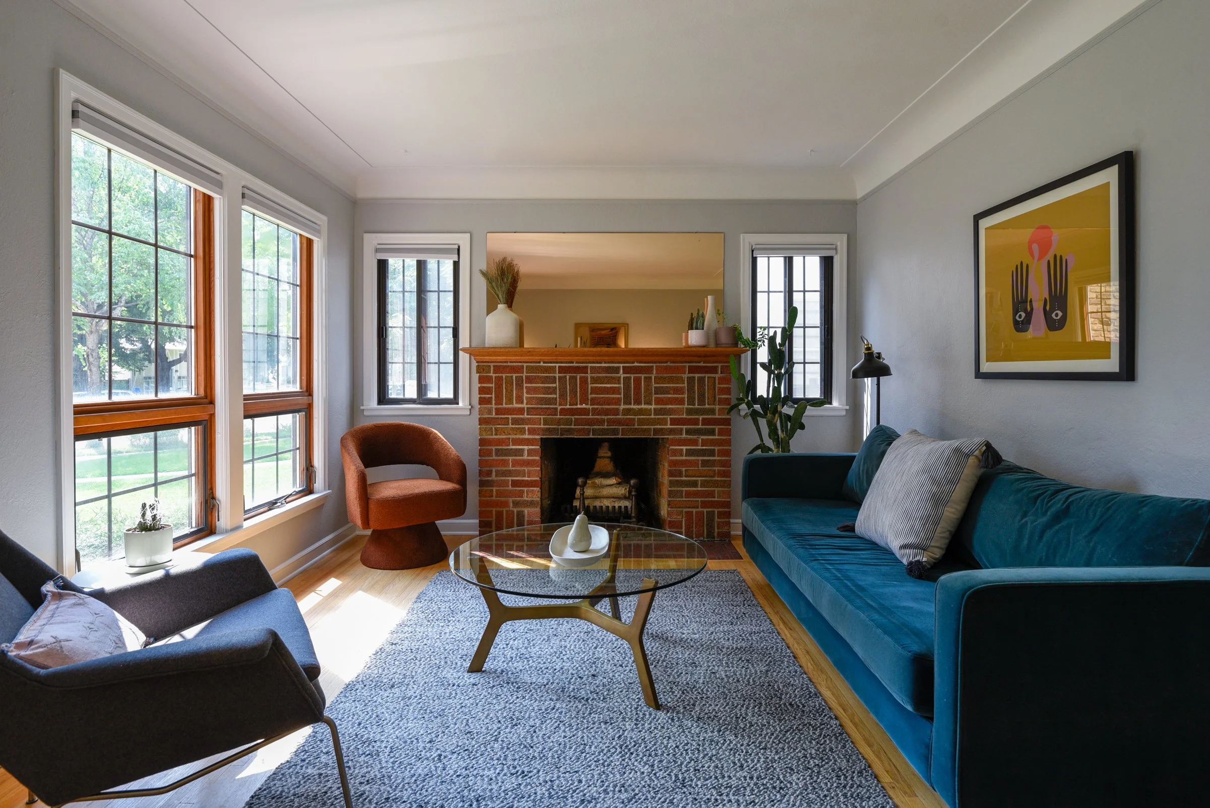 Capsule Presents 🌷 this ☀️ sunny, 1941 1.5 story charmer. Nestled in a lovely pocket of Audubon Park in NE MPLS, this mid-century home blends original vintage charm with modern updates throughout. Step in and you’re greeted by a sun-filled living room with original oak hardwoods and striking brick fireplace. Archway openings connect the living room to the dining room with built-in corner cabinets. Also on the main level are two bedrooms and a jade green vintage tile bathroom, while upstairs you’ll find the third spacious bedroom. The backyard features a full privacy fence and patio for relaxing. ⛱️The lower level features brand new carpet in a large, open living space to make your own. Wonderful location close to Mother Earth Gardens, Hazels, walking and bike trails and so much more. Brand new roof, carpet and fresh paint throughout!