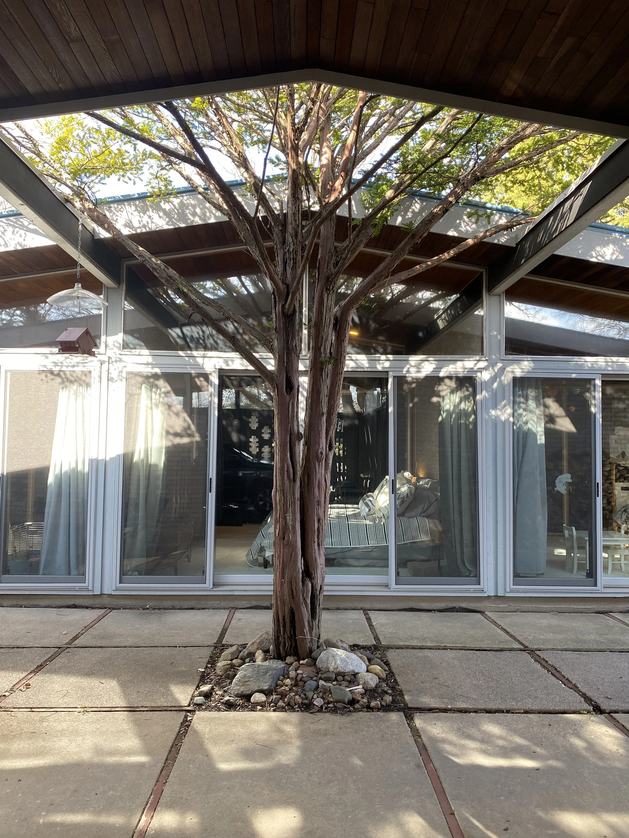 Complete with wood paneled walls, ceilings and a COURTYARD!