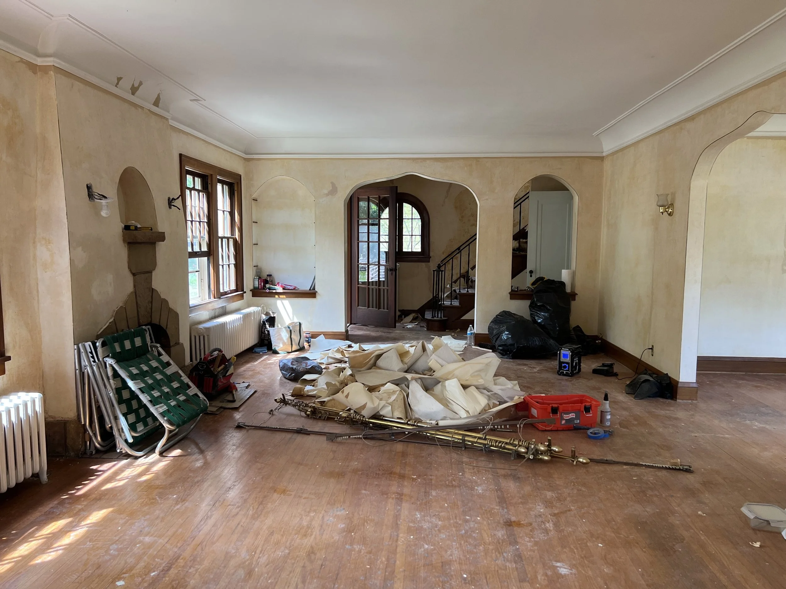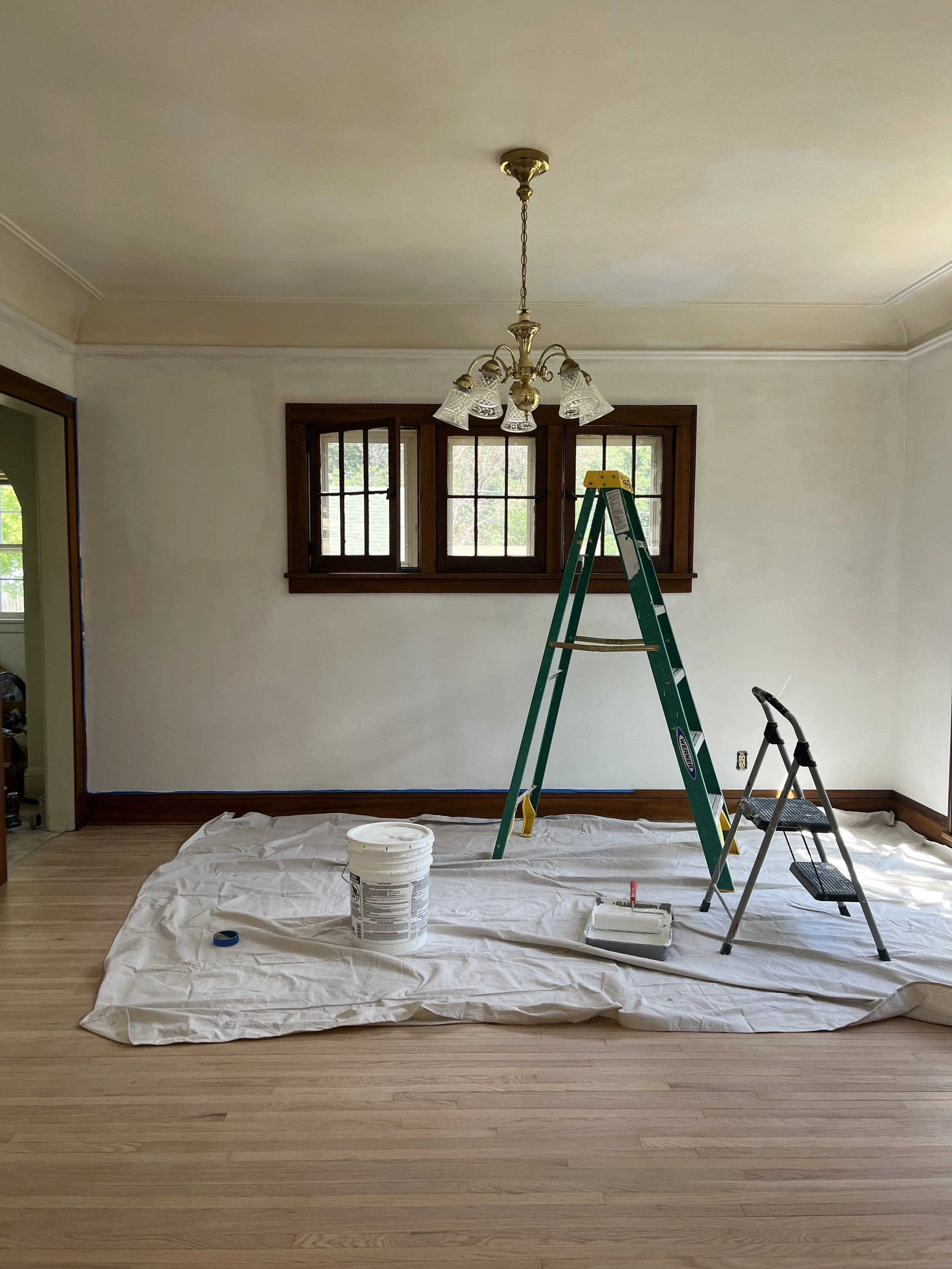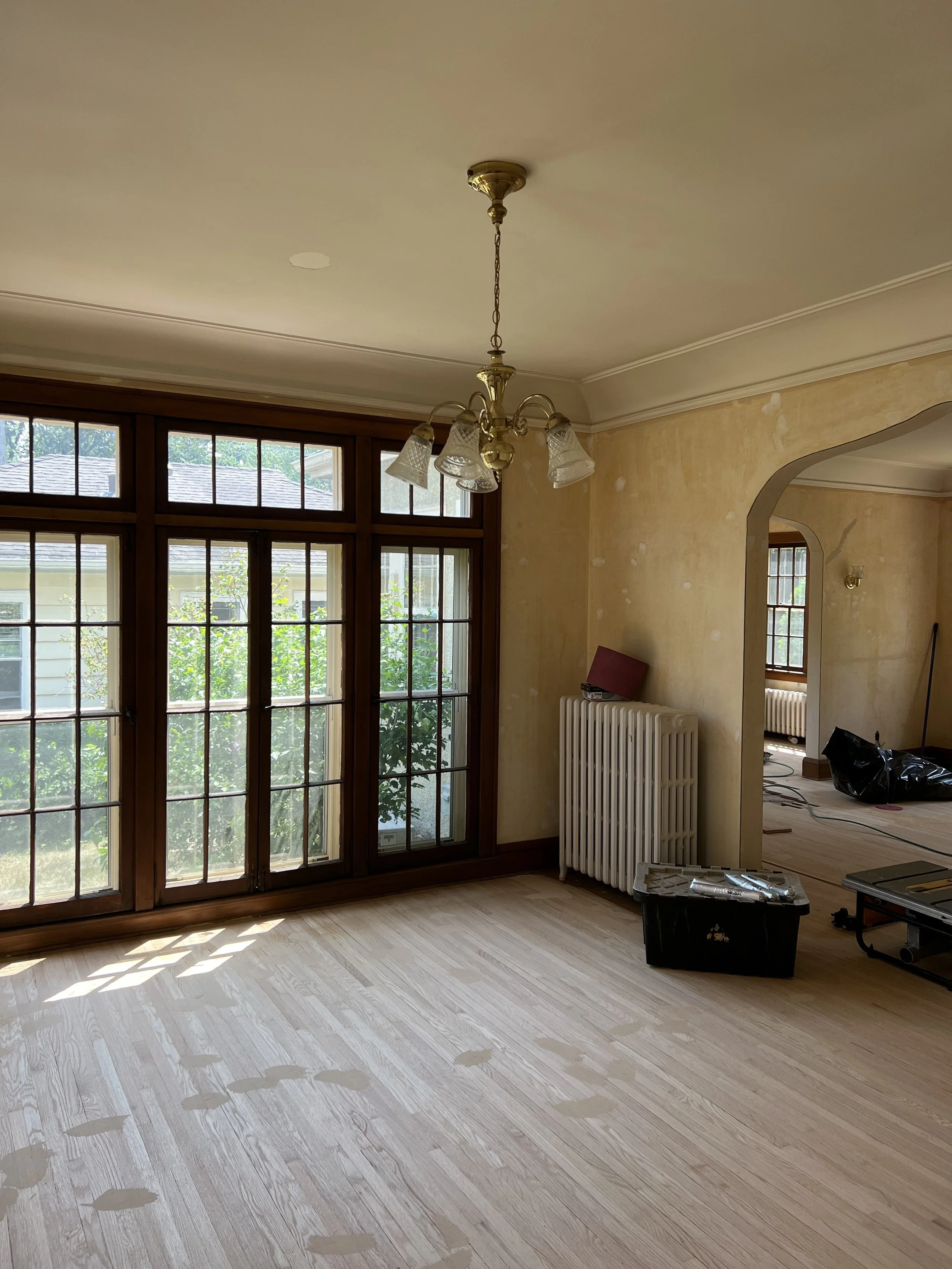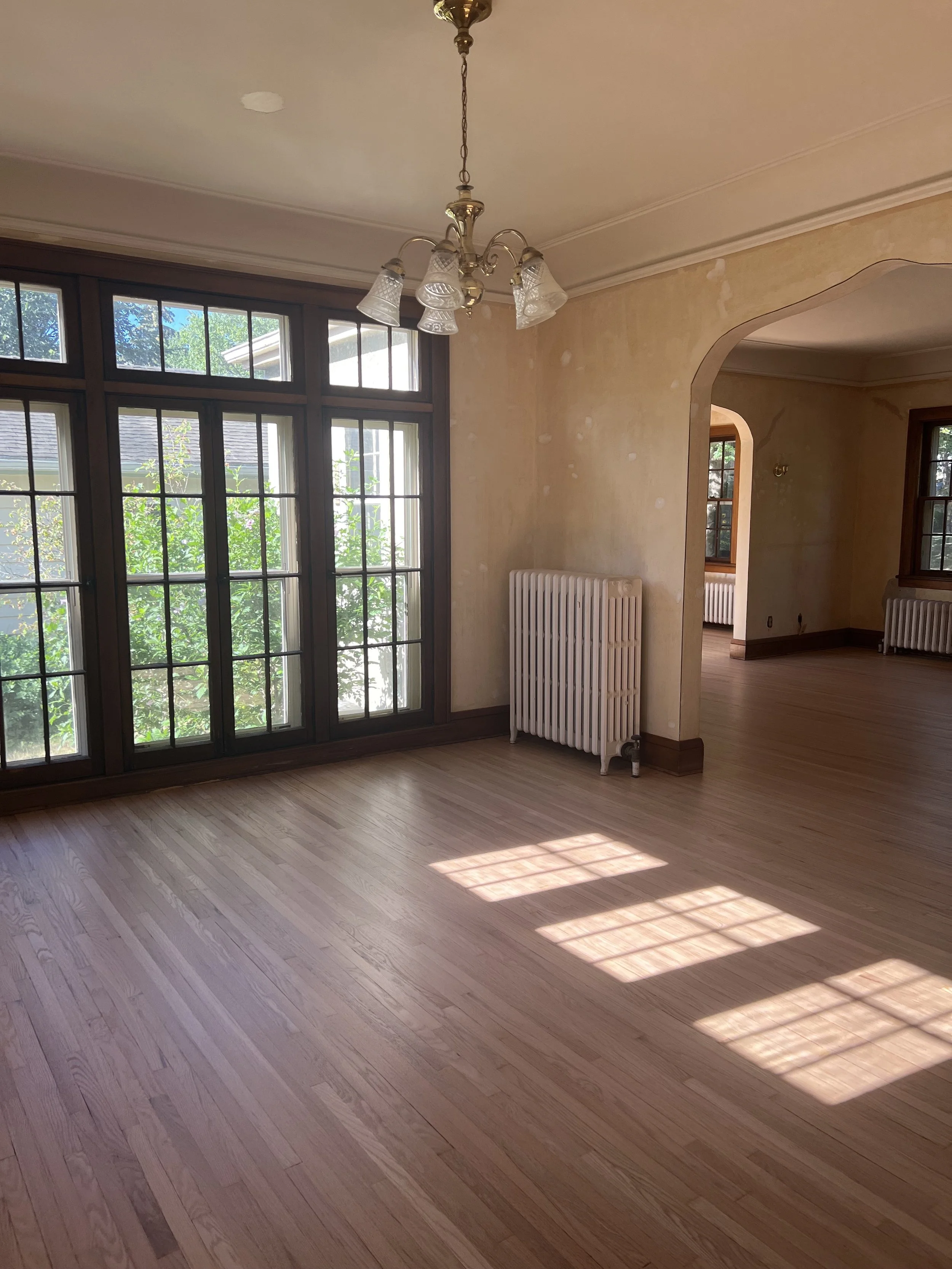The final piece before we were able to move in was to get the floors refinished. They had been covered for decades by carpet, and were in need of sanding & restoration. Some areas of the floors had pet stains (animal urine ruins wood - there’s really no coming back from it) so those pieces had to be removed and new pieces woven in.