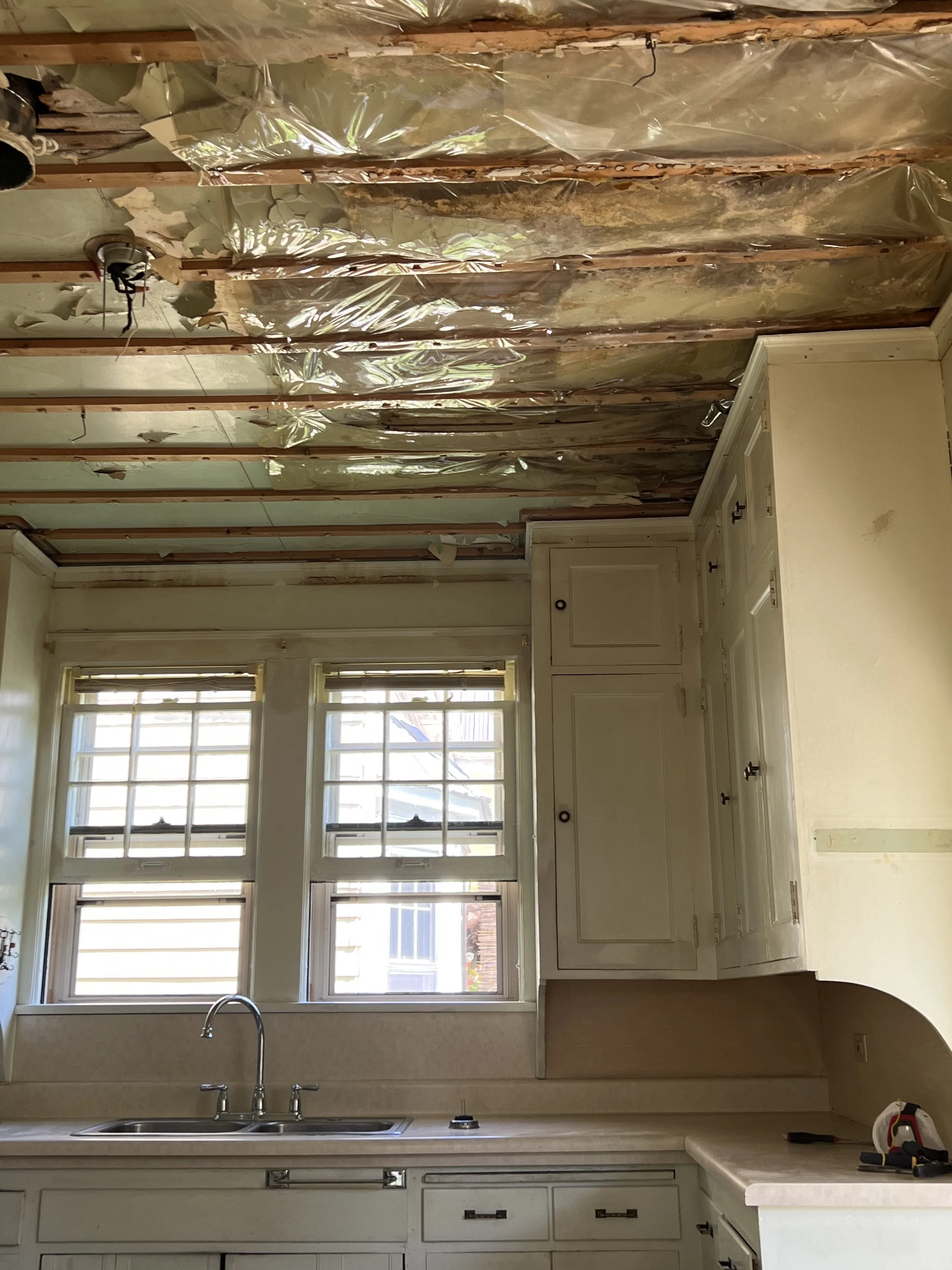 Having gone through several iterations of whole-home updates, I have a high tolerance and comfort level for this kind of thing. I love helping my clients see the potential in spaces, but meet everyone where they are. Sometimes a space’s full potential can be realized simply by painting the walls or styling with furniture & textiles. Sometimes the kitchen ceiling has to be ripped out and a dead mouse has to fall on your head to fully realize a space. It’s a big, open spectrum and to me, it’s very fun.